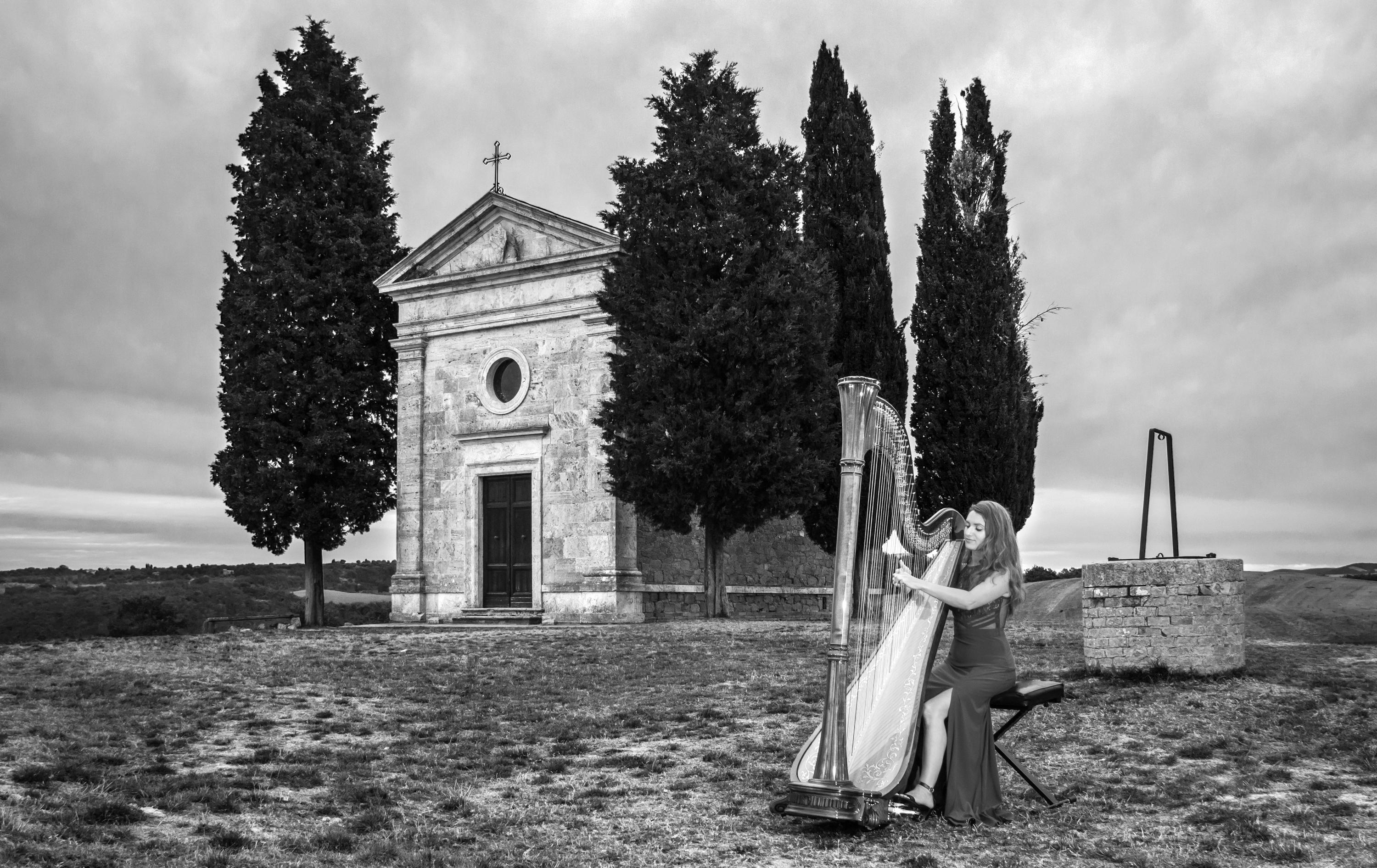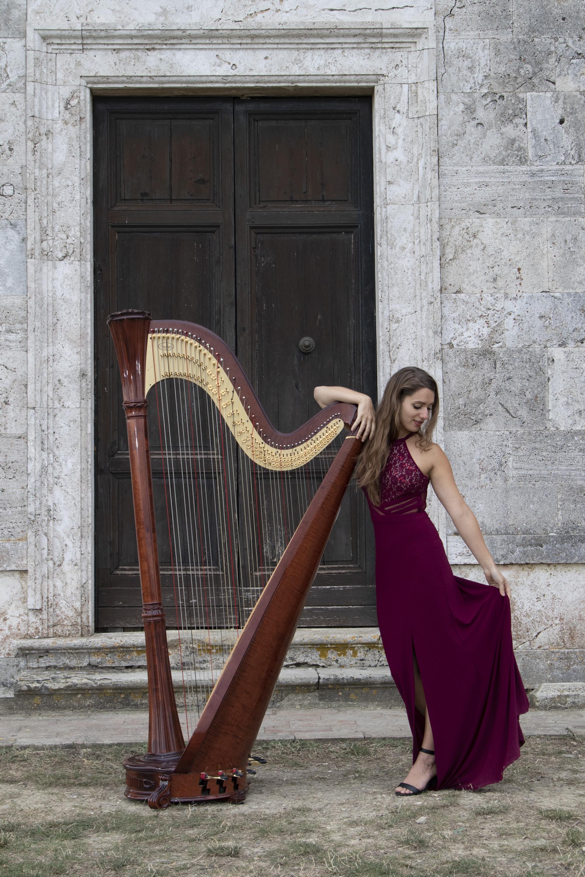 Eleonora has an extensive repertoire, from classical to popular, passing by Celtic music. She plays both pedal harp and celtic harp. She'll be able to meet your needs and make your dream wedding music come true.
