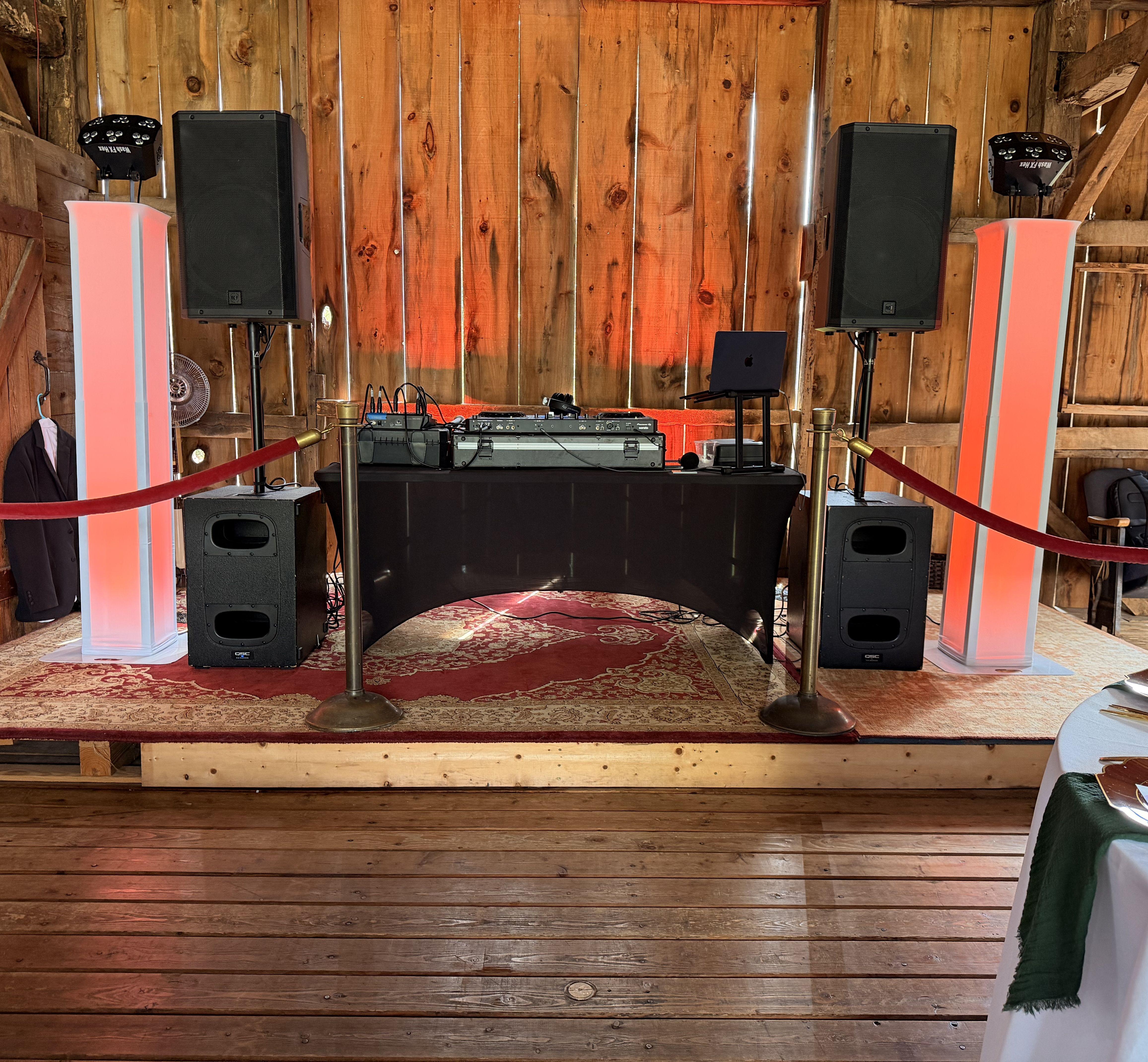 - Wireless mic, stand, speakers and DJ for ceremony