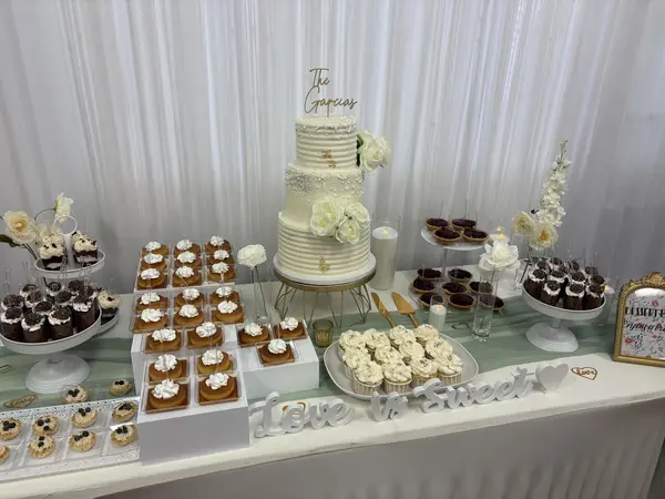 The Elaborate wedding package truly embodies elegance and sophistication. Designed for a grand celebration with 100 guests or more, this package ensures that there’s an abundance of cake and desserts to delight every attendee. Featuring a stunning three-tier cake that radiates glamour, it’s the perfect centerpiece for your special day.