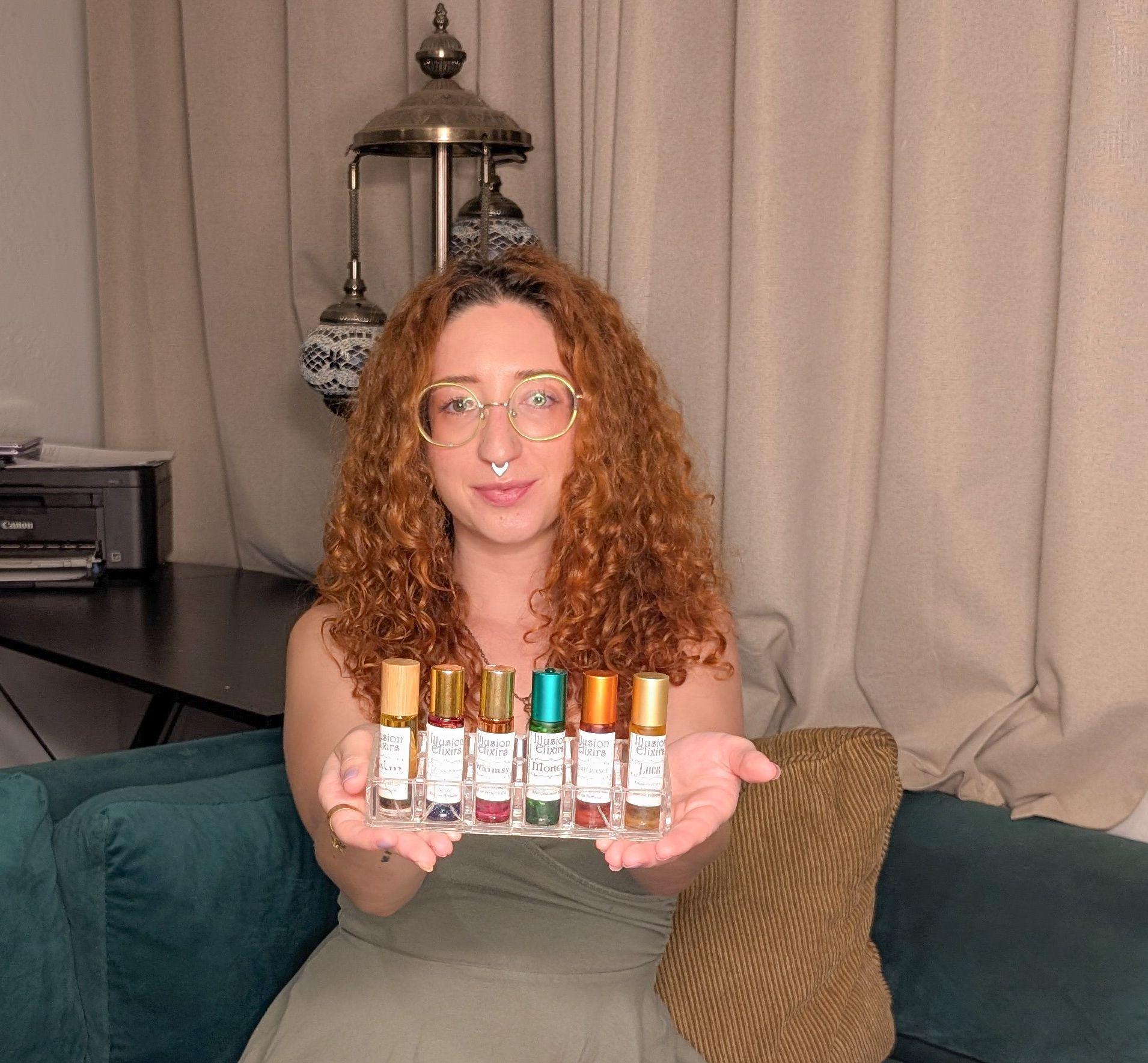 My name is Maia White and I am an experienced tarot and oracle card reader, perfumer and copper jeweler. I have been reading tarot cards for 8 years and have read at local shops, large birthday parties, on YouTube, TikTok and large events, like festivals and fairs. Divine guidance is a way of life to me and I would be honored to read tarot at your wedding! 💗 For nearly a decade, I’ve been blending custom fragrances designed to capture a feeling. Whether it’s a signature roll-on for a guest of honor, for gift bags, or a natural perfume oil to remind you of your special day, I'm happy to create something for you!