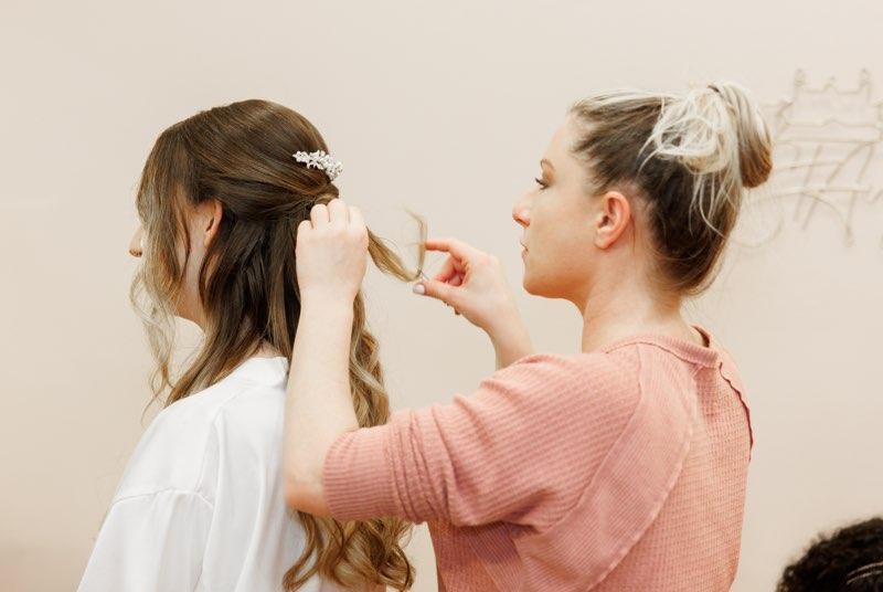 After a rocky trial with another company, I was lucky enough to find Jen and book her to do my hair for my wedding day. We did a trial together first and I was immediately put at ease because of her attention to detail and talent. On my actual wedding day, she was able to handle 5 bridesmaids, my mom, and me, and made us all look amazing. She was punctual and really listens to what you want. She kept emphasizing how important it was that everybody loved the way they looked and made any tweaks that we suggested with such kindness and patience. She contributed to such a happy and calm environment while we were getting ready. Jen, I can't thank you enough for all the love and care you put into making my friends, family, and I look and feel amazing. It was the best decision ever to book you for our big day! I couldn't recommend you more!