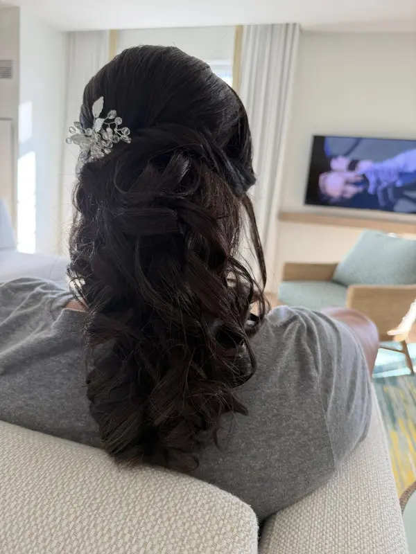 I cannot recommend Kristal enough. As someone who almost never wears makeup, I was really nervous about the whole process. I also have lot of dark spots from previous acne scars that I wanted covered up. I also have 4b/4c hair, so I was worried about how my hair would hold up throughout the day. From the very beginning, Kristal was kind, communicative, and reassuring. During the trial, I was absolutely blown away by how beautiful the makeup looked. On the wedding day, she arrived promptly and kept everything running smoothly. We were actually ahead of schedule, which is a miracle on a wedding morning. Kristal did makeup and hair/makeup for my mom, aunt, sister‑in‑law, and me, and we all looked incredible. Everyone felt confident and comfortable, and our looks held up perfectly the entire day. She also did a man bun for my fiance which held up great all day! If you’re looking for someone who is talented, professional, and genuinely cares about making you feel your best, Kristal is the one. I highly recommend her.