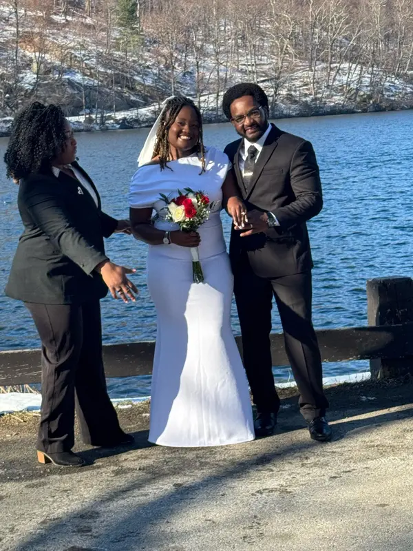 My wife and I had been planning our micro wedding when we realized we still needed the perfect Officiant. After a few consultations with others, we were okay, but my wife insisted we have one more this time with Ope. From the moment we spoke with her, everything changed. She had an instant gravitating presence full of conviction, confidence, and passion. Her dedication to her clients is unmatched: she offered multiple follow-up meetings, rehearsals, and even connected with our families to learn more about us. The highlight was the beautiful love story she crafted for our ceremony, truly perfect. Choosing Ope was one of the best decisions we made. She was professional, welcoming, understanding, and radiated a commanding yet warm presence throughout. Her infectious spirit made the entire process a joy. Our guests couldn’t stop talking about how amazing she was, especially the love story she created for us. Thank you, Ope, for making our wedding ceremony everything we envisioned. You've gained two new friends, and we wholeheartedly recommend you to anyone looking for a passionate, inspiring officiant. Sincerely, E & V