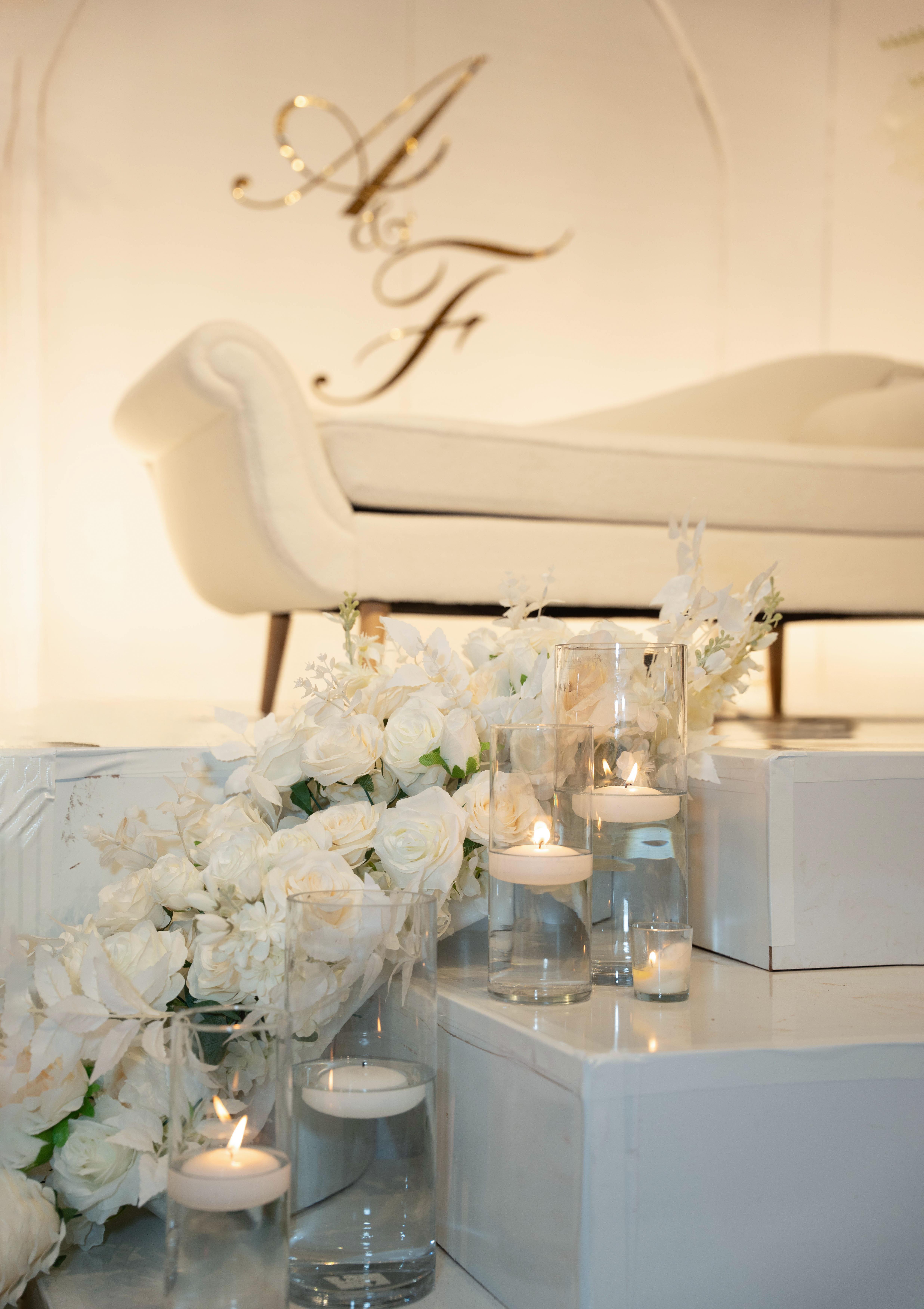 At Almas Events, we set ourselves apart by handling every aspect of wedding décor—including florals, dance floor wraps, centerpiece design, draping, lighting, custom signage, and bespoke designs—crafting unforgettable experiences tailored to each couple.
