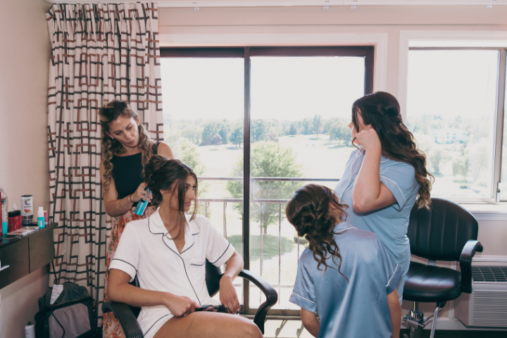 -3 Getting Ready Stations -Full Length Mirror -Seating Area -3 Chandeliers -1 Full Bath -Closet w/ Hangers