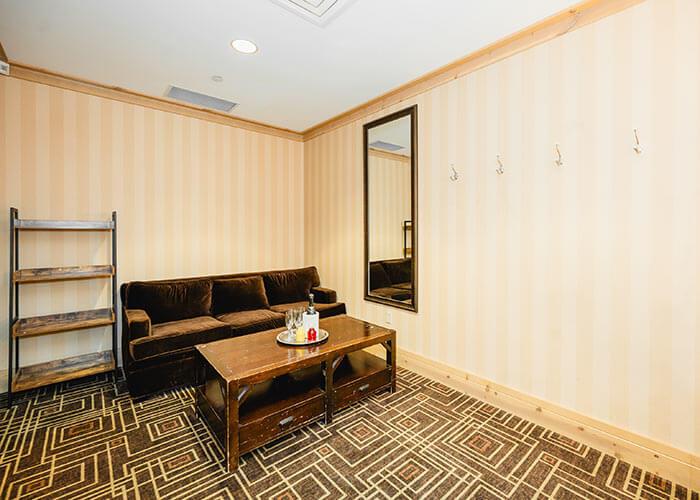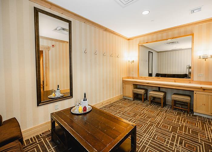 Attached to the women’s restroom, the Wedding Suite features thoughtful amenities including full length mirrors, comfortable seating, and a glam station.