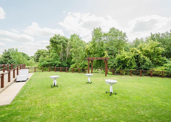 The Amphitheater provides an unmatched outdoor celebration space, perfect for your wedding ceremony. The lawn can accommodate up to 350 guests in stadium seating or 144 guests for dining. Tents, tables, chairs, and dance floor rental are required.