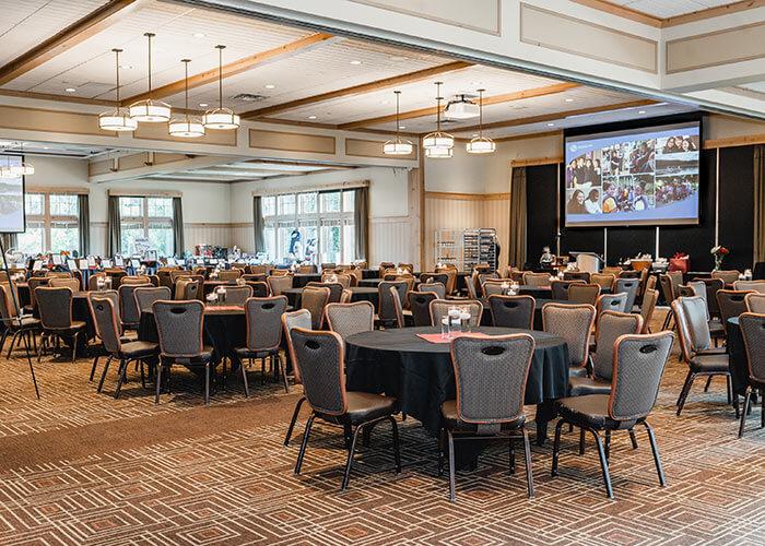 The Grand Ballroom features expansive views of Bunker Hills Golf Course and can accommodate up to 384 guests. Surrounded by windows, the Grand Ballroom features two private bars and access to the Amphitheater, patio and fire pit. The Grand Ballroom can be divided into three smaller event spaces.