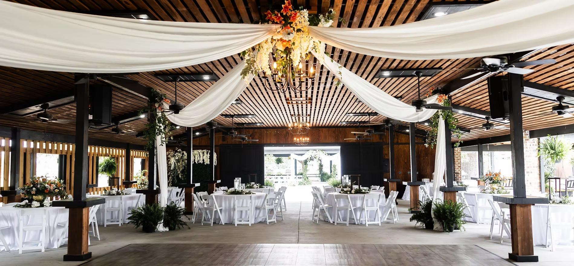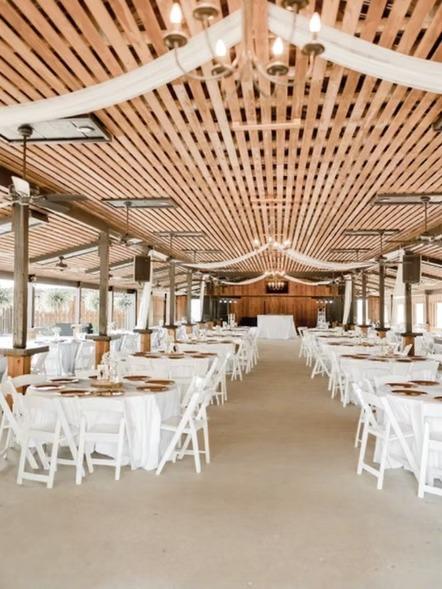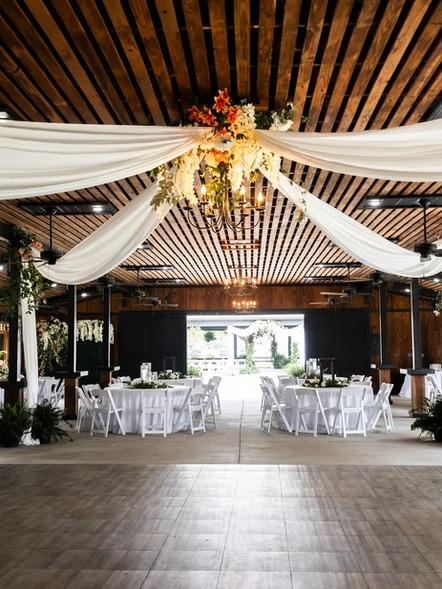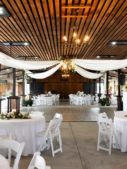 Enjoy 3,500 square feet of climate-controlled indoor spaces paired with 8,500 square feet of covered open-air areas, complemented by a stunning 2,000-square-foot courtyard featuring a fountain and stone fireplace—perfect for twilight toasts and al fresco gatherings. The bridal suite offers over 1,300 square feet with four makeup counters, ideal for a full bridal party to get ready in style, while the groom’s suite provides 700+ square feet complete with a pool table and relaxation essentials. For your reception, choose from 33 round tables, 34 rectangular tables, 12 cocktail tables, rustic picnic tables, 600 white banquet chairs, 50 mahogany chairs, portable serving bars, two rustic wooden bars, a 20x20 dance floor, patio heaters, wire spools, ceremony arches, and farm doors—all enhanced by WiFi, a full Bluetooth sound system with lighting, and TV display capabilities. With so much thoughtfully included, every element works together to help you create the wedding of your dreams with ease and beauty.