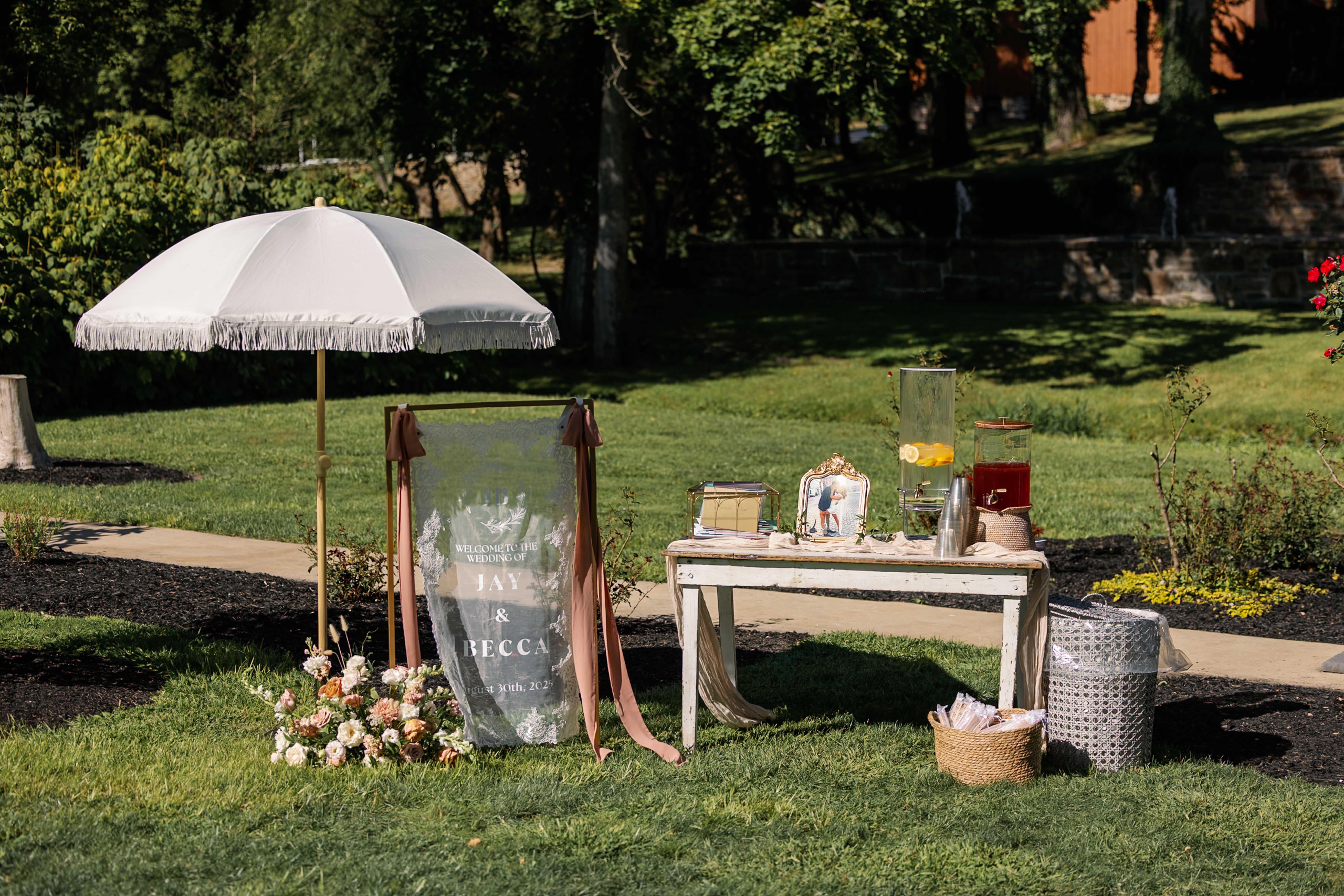 Ideal for couples looking for a full wedding day that gives their guest the ultimate outdoor wedding experience. Your choice of outdoor ceremony location, greenhouse for cocktail hour (or ceremony), and 4,000 sq foot reception tent with white draping and crystal chandeliers.