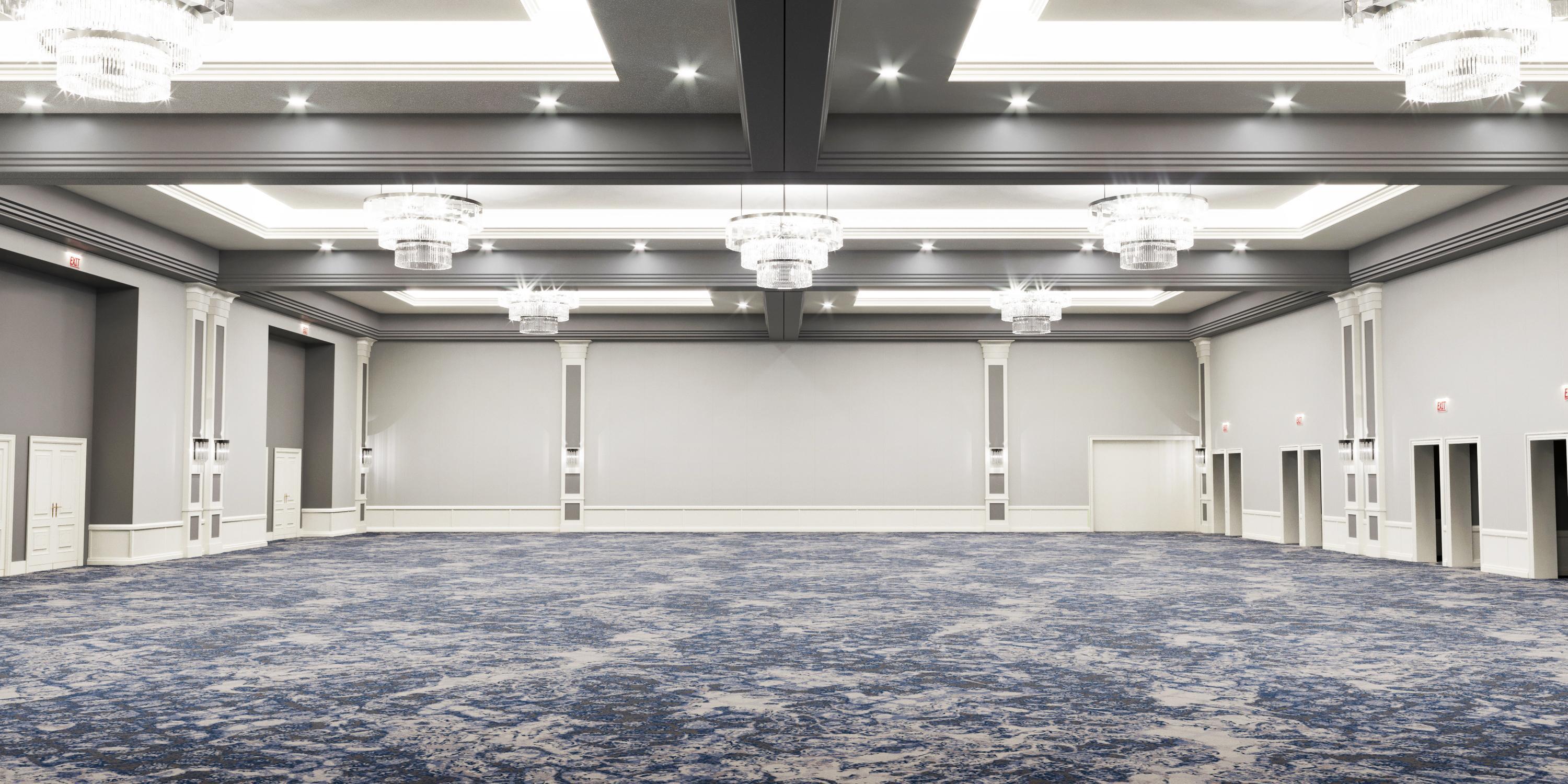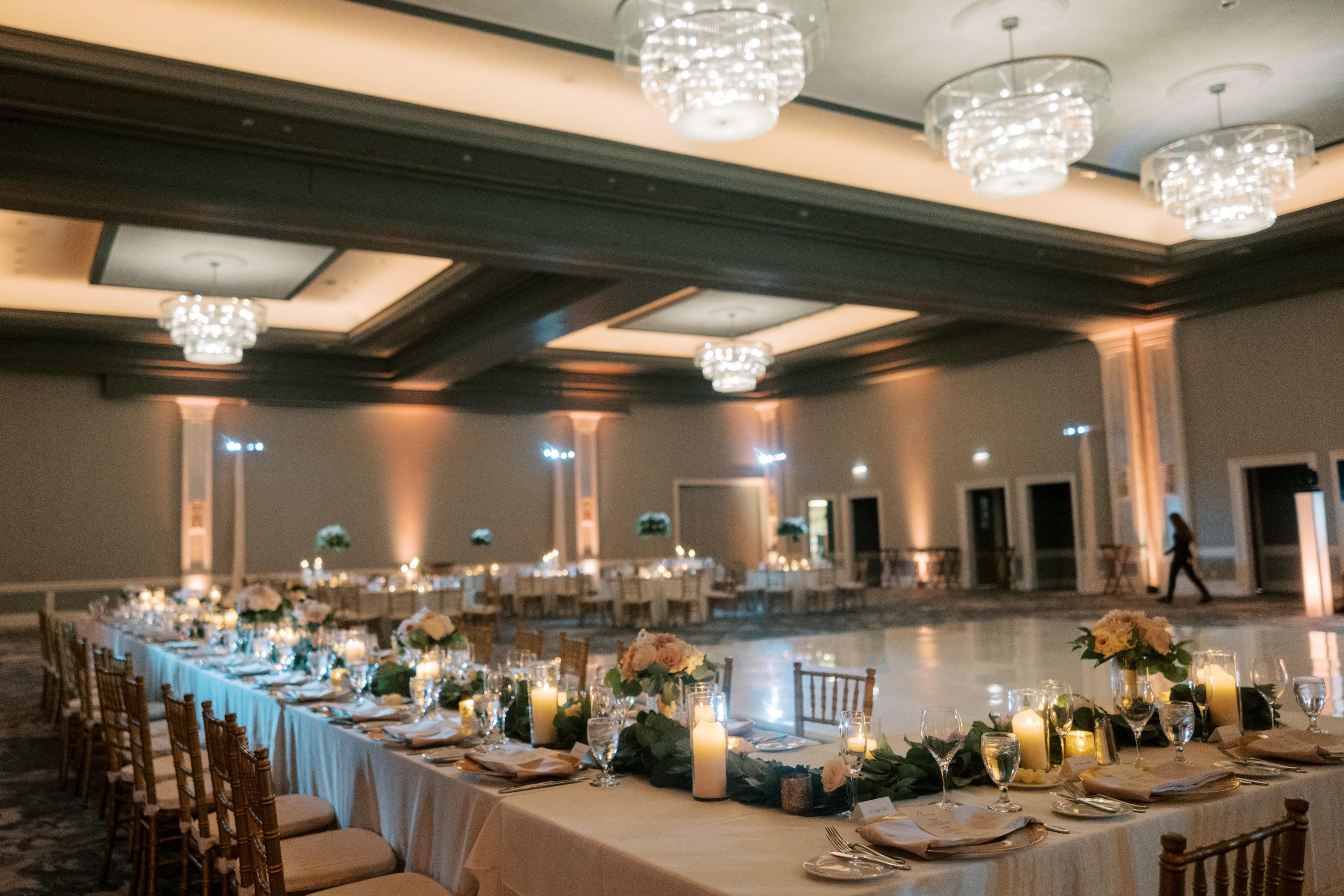 This recently-renovated ballroom with spacious foyer and outdoor terraces showcases high ceilings and crystal chandeliers.