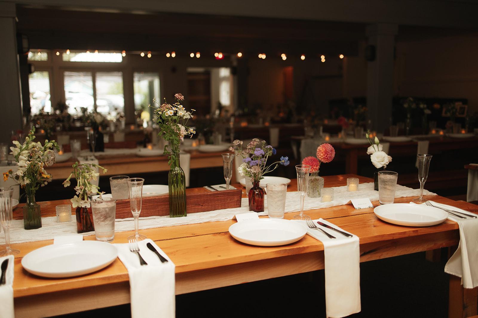 - Tables - options for Farm Wood Tables and Benches, or Rounds and Chairs, includes Bar Setup, Dance Floor, Private Patio and Fire Pit