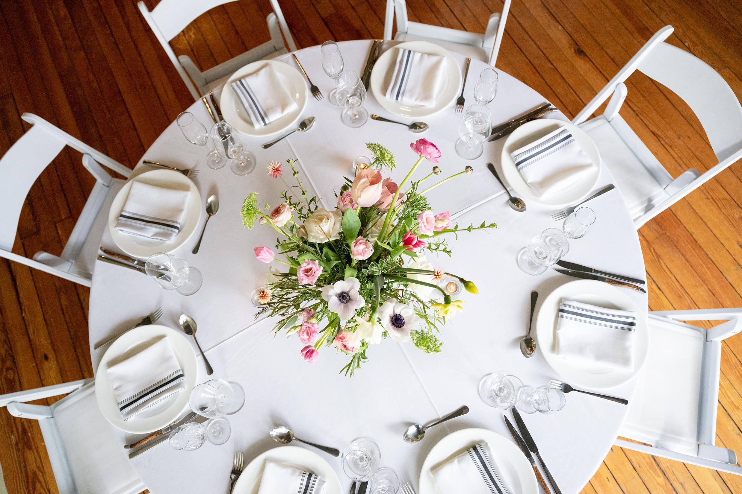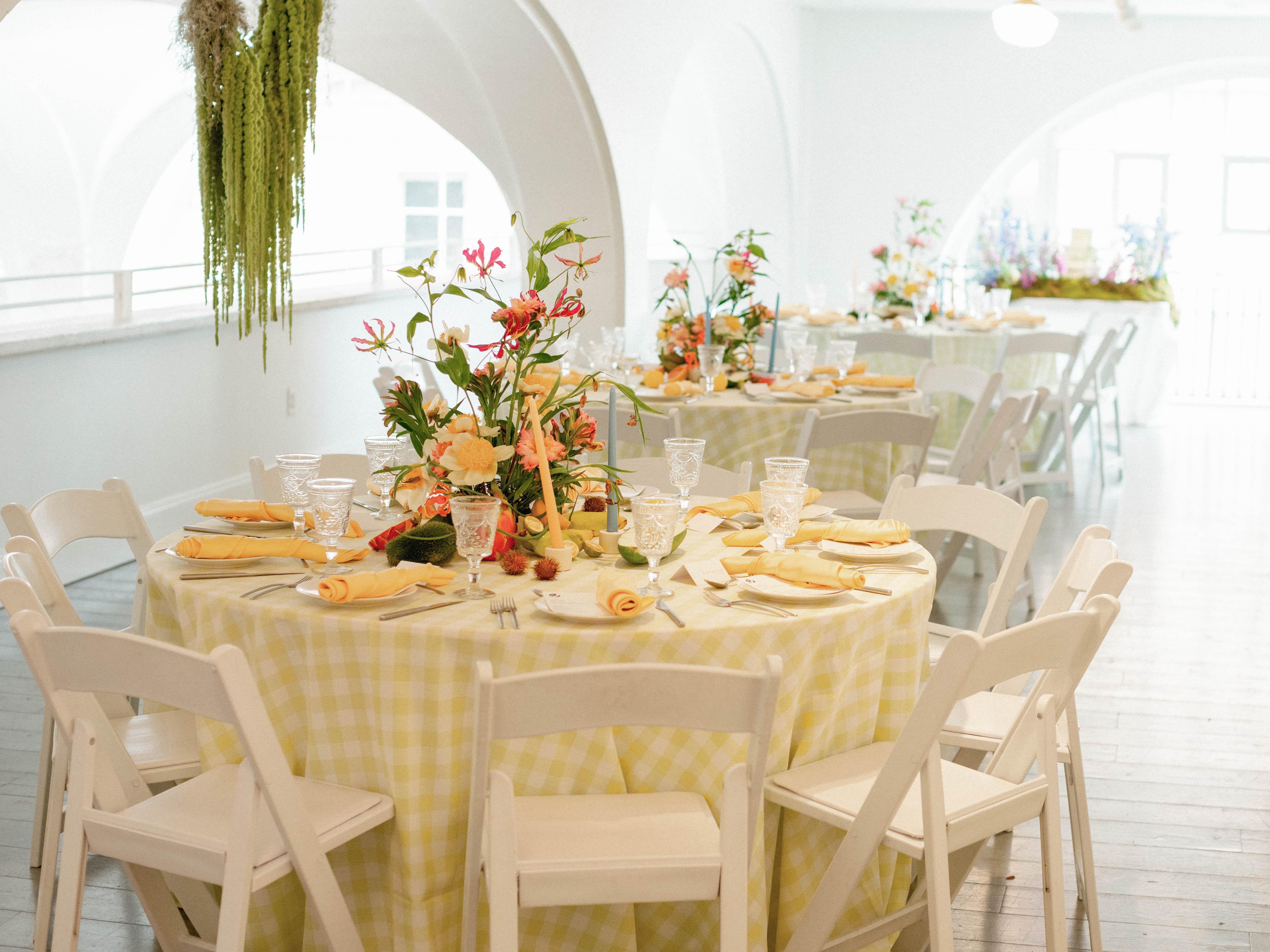 -Tables, chairs, tablecloths and napkins -Flatware, china, and glassware -Removable bar
