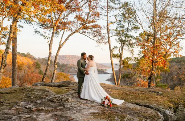 With panoramic views of Greers Ferry Lake and the Ozark Mountains, Rocky Top Falls offers a romantic setting to celebrate your big day. You’ll have access to multiple ceremony and reception spaces, each designed to bring your wedding vision to life. Our package includes a 2-night stay in our guest house, and access to the private 10-acre property and all ceremony and reception spaces during that time!