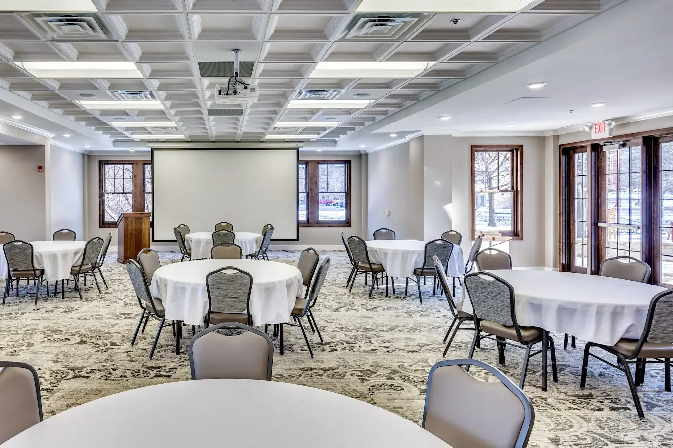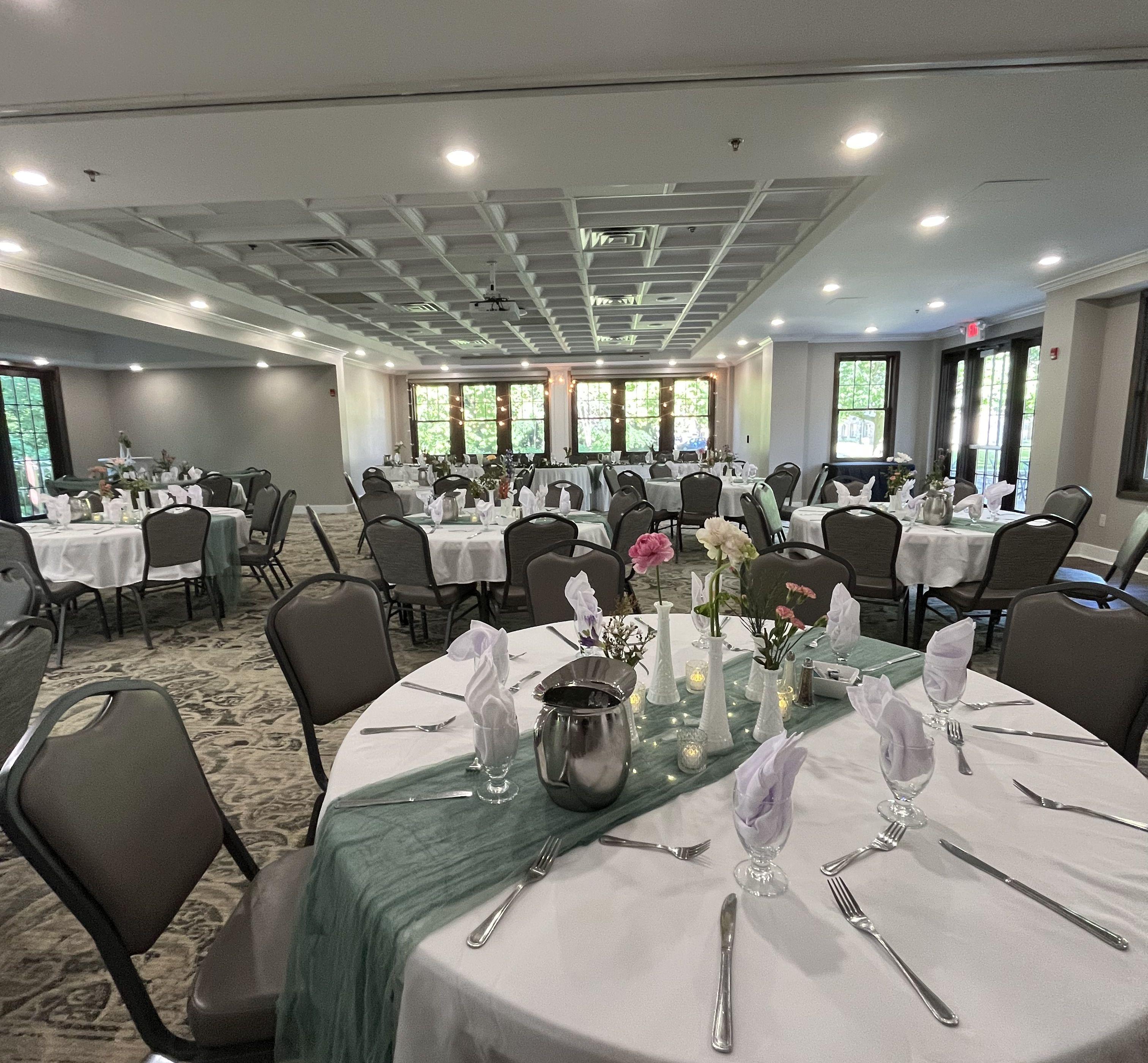 Your room rental comes complete with tables, chairs, linens, napkins, water service items, silverware, salt and pepper, full A/V capabilities—including house sound and three projectors—and use of the outdoor deck and patio spaces.