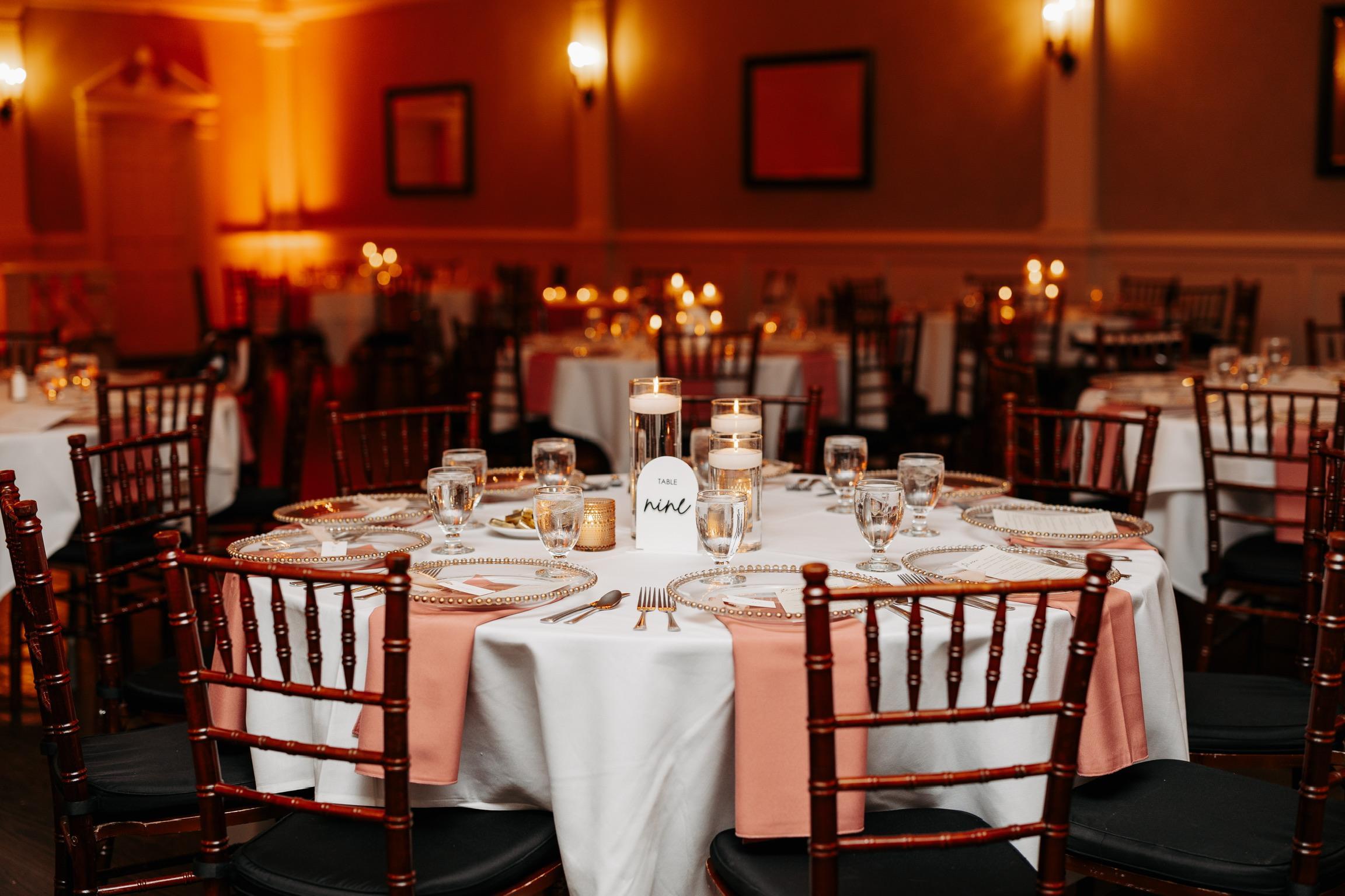 Oak & Vine is the perfect space for a more casual event. Featuring wood tables, a fireplace, and a private bar, this space is great for a more laid back celebration, but add white linens and you are able to brighten the space up for a more formal feeling.