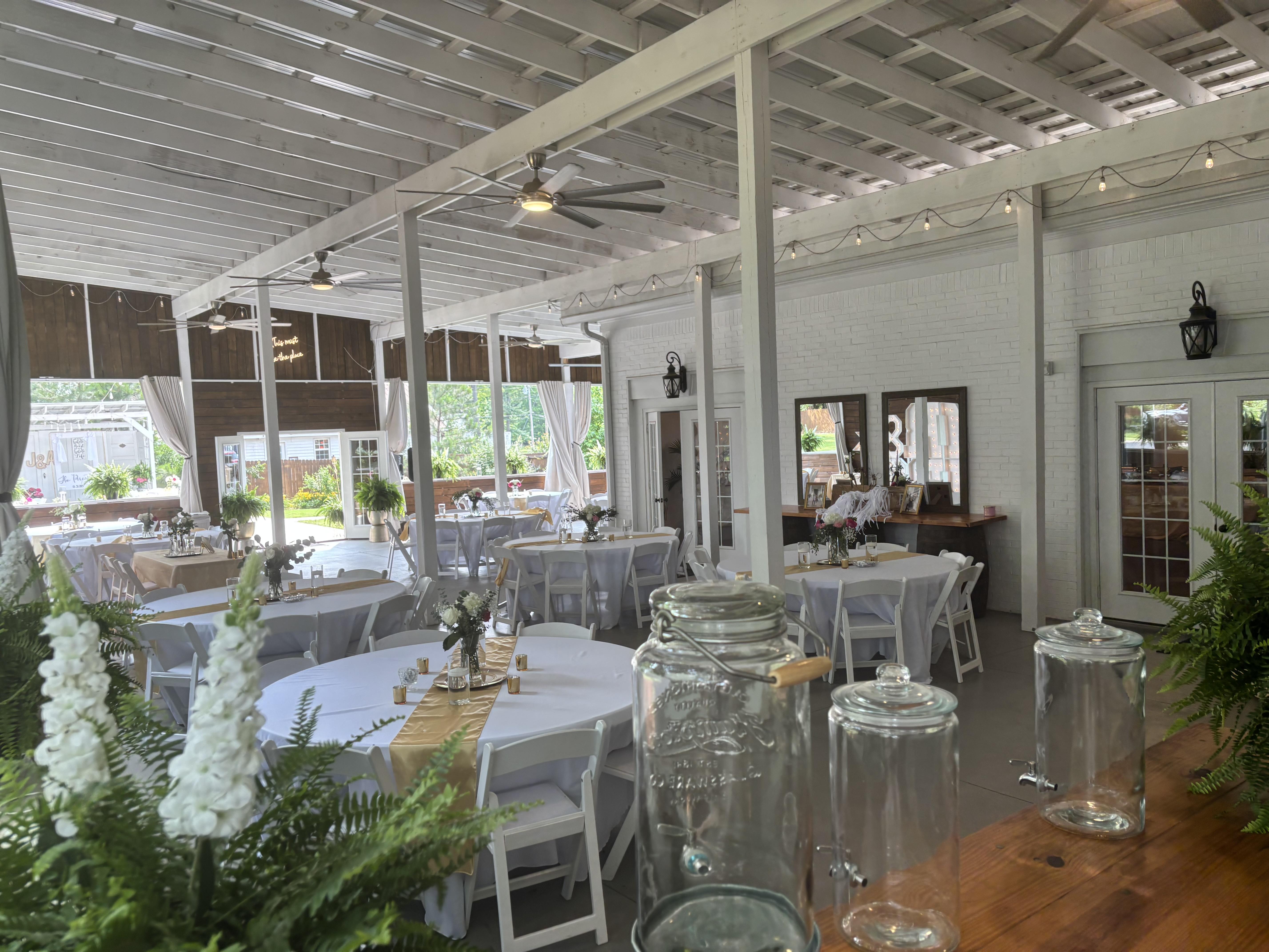 - additionally, an outdoor dance floor and bandstand are adjacent to the pavilion - tables and chairs included - 10 ft. drapes around the perimeter - 4 enormous ceiling fans - outdoor heaters