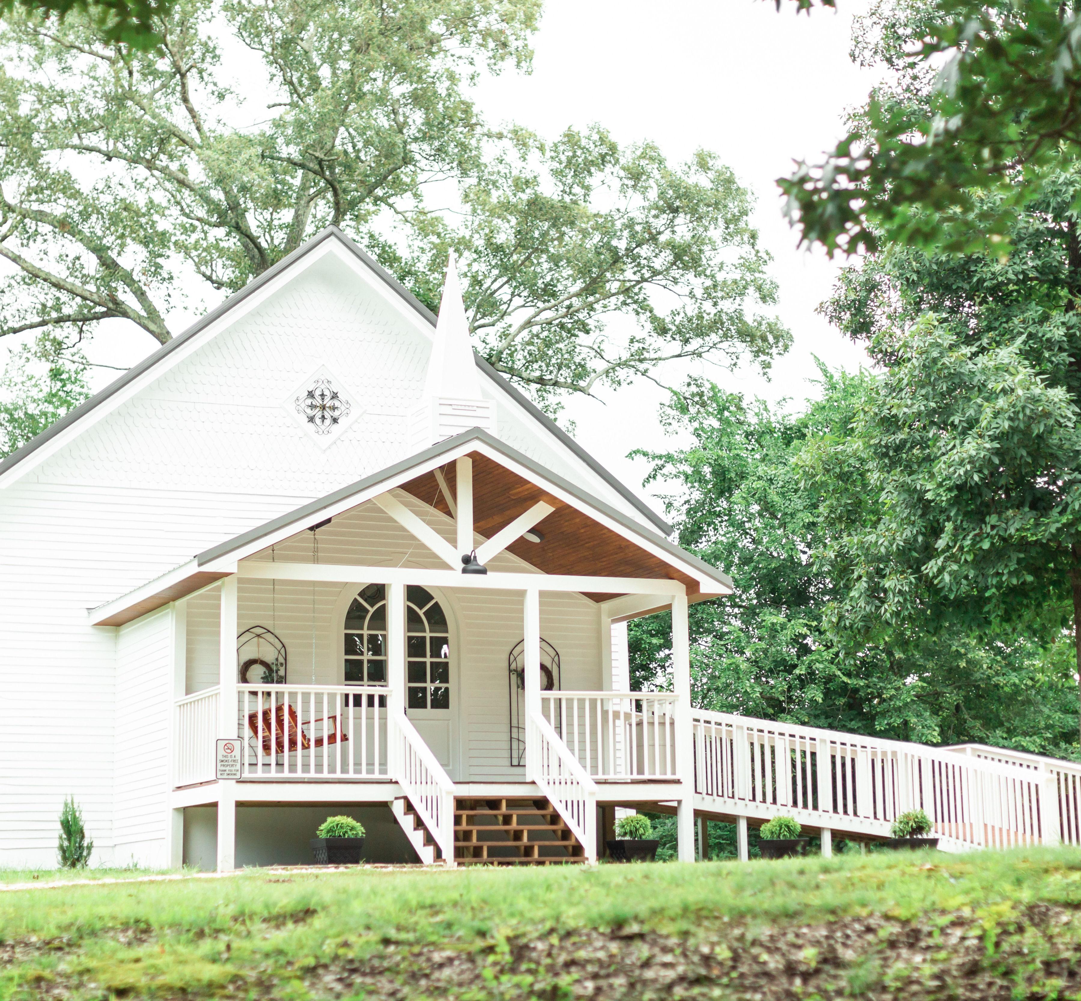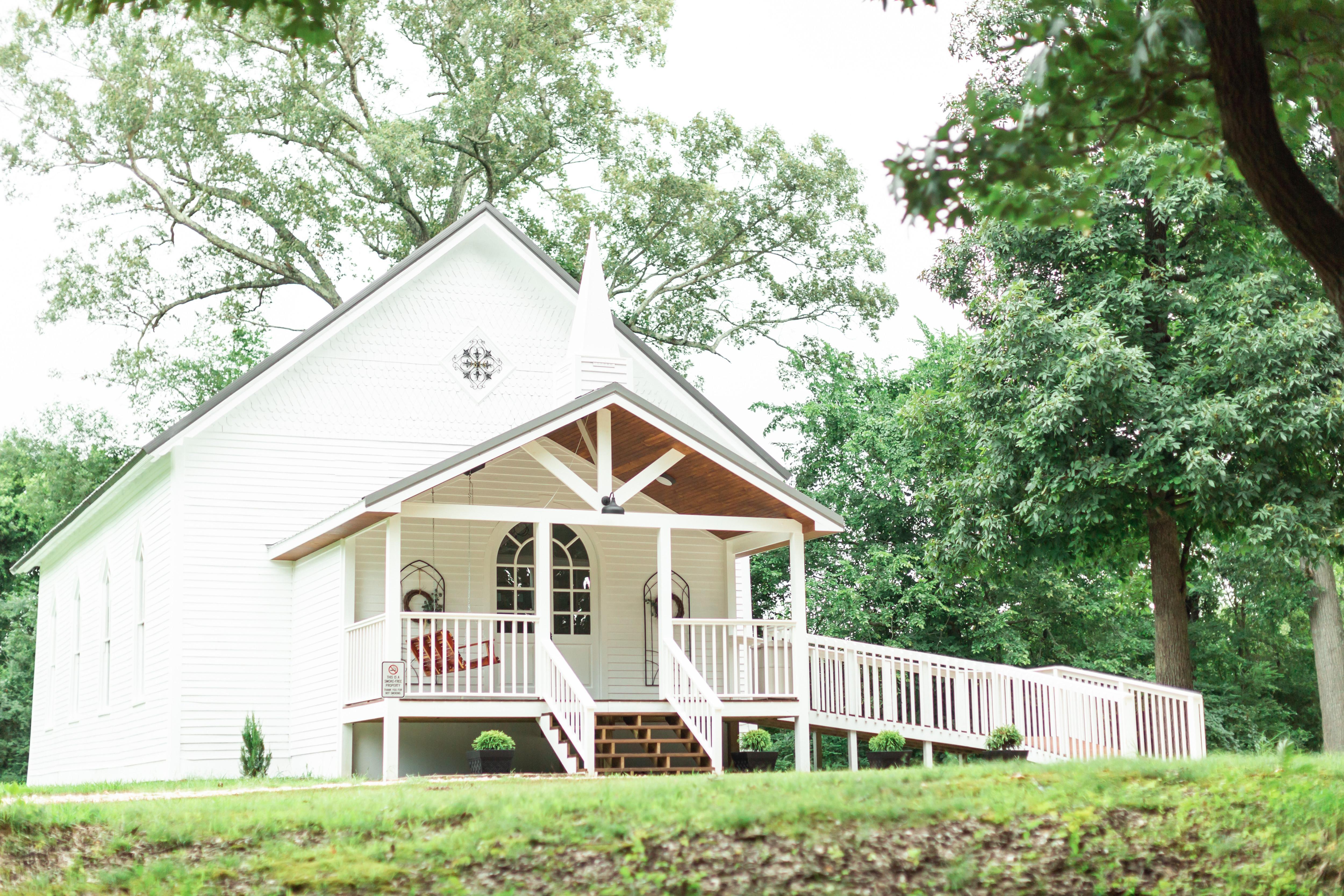 The Caldwell Chapel, which seats approximately 115 guests, sits on 2 picturesque acres boasting forest land, a gazebo, and sweeping green lawns. The chapel is the perfect mix of vintage Tennessee beauty and modern comfort.