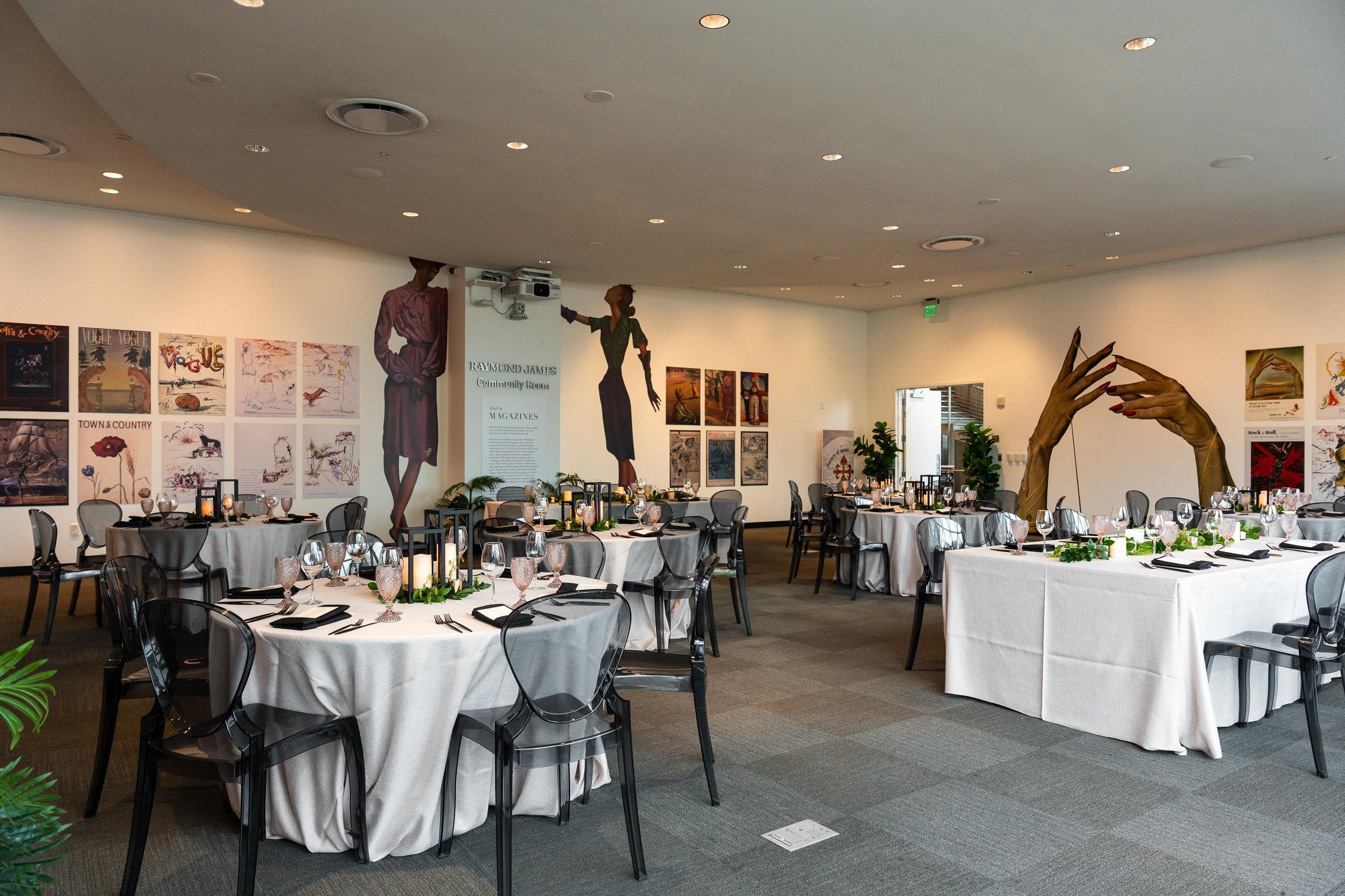 Perfect for the largest celebration, the Avant-garden and Raymond James Community Room together provides the room needed for even the largest celebrations and events. The combination of space gives guests the complete Dali experience inside and out; from celebrations in the garden to cocktails in the Foyer, this space is sure to provide the once in a lifetime experience.
