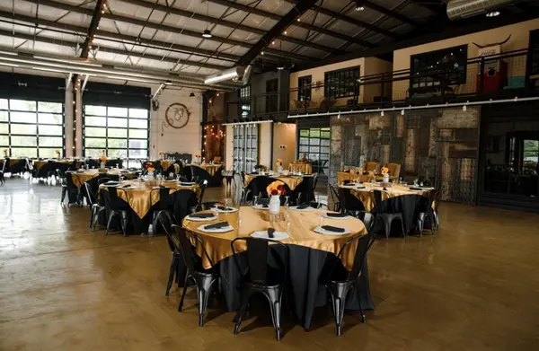 The Grand Room elevates the concept of a "barn" with its industrial sleekness, rustic charm, and spacious, air-conditioned setting. Featuring fantastic acoustics, two lively bars, and 100% ADA accessibility, it caters to a diverse crowd, from great-grandmas to cowboy enthusiasts. With adaptable ambiance, it accommodates both intimate weddings and grand celebrations, seating up to 250 guests with a dance floor or 300 for a spacious experience. The all-glass garage doors provide an outdoor feel, allowing for creativity and enjoyment regardless of the weather.