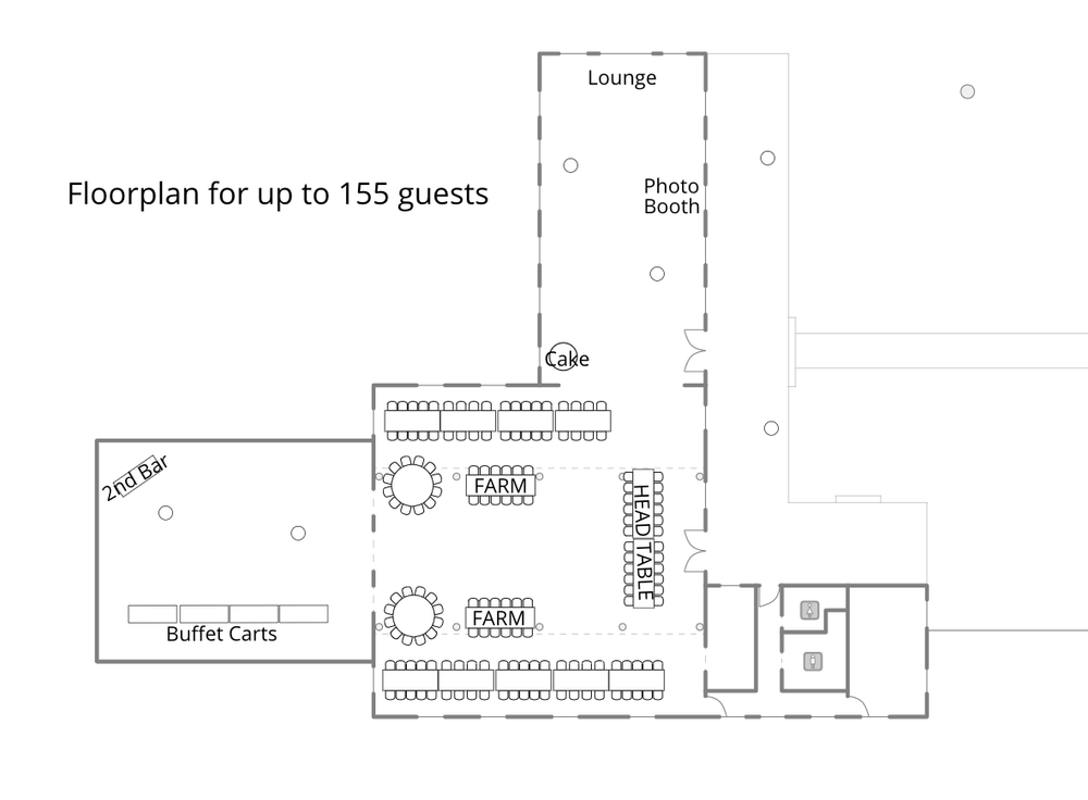 We are a family owned + operated business. We believe that family is so important in the foundation of marriage and we love welcoming all of our sweet couples into our family! Each area of the property has been meticulously thought out with our couples in mind. We thrive in making sure each couple + their families feel at home and at ease on their wedding day! We are located near a ton of hotels. We have a flexible floor plans with many set up options! We also have a large asphalt parking lot. The Venue offers a bridal suite complete with h/m stations, smart tv+mini fridge, a masculine grooms cabin with smart tv +mini fridge, a large outdoor ceremony space, an indoor chapel, a large covered porch for cocktail hour, (2) kitchens, bar kitchen, and a large catering kitchen. We have two sets of men’s and women’s restrooms, one set at each end of the building. We also have a fully handicap accessible restroom. We have on site lodging as well as a smaller venue for your rehearsal dinner.
