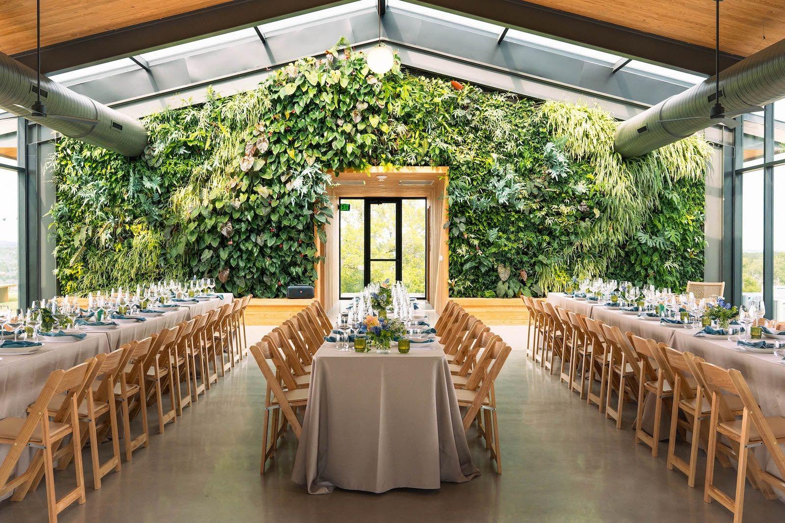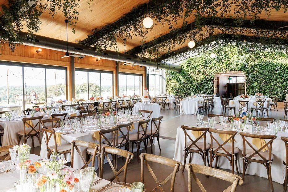 Your ceremony unfolds in a setting that feels like a dreamscape — where the lodge’s beautifully framed open-air design transitions seamlessly into a panoramic lawn overlooking the Pedernales. Imagine walking down the aisle surrounded by golden Texas light, soft breezes moving through the native grasses, and your guests gazing out toward the rolling Hill Country horizon. Whether you choose the airy lawn perched high above the river or the lodge’s interior framed by a living plant wall and warm wood textures, each space embraces nature while offering the comfort and elegance you’ve envisioned for your “I do.”