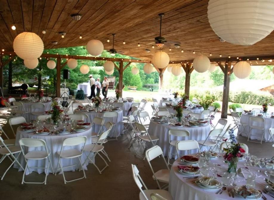 The large outdoor Pavilion is the ideal setting for grand-scale receptions and celebratory feasts, offering a covered, yet open-air experience. Surrounded by the natural beauty of the 500-acre property, it provides a flexible, robust space for dinner and dancing without compromising the spectacular mountain views. It is designed to accommodate substantial gatherings, making it perfect for your main wedding reception. This venue is easily customized with decor and lighting to match your vision, creating a memorable party atmosphere with the serene wilderness as your beautiful, natural backdrop.